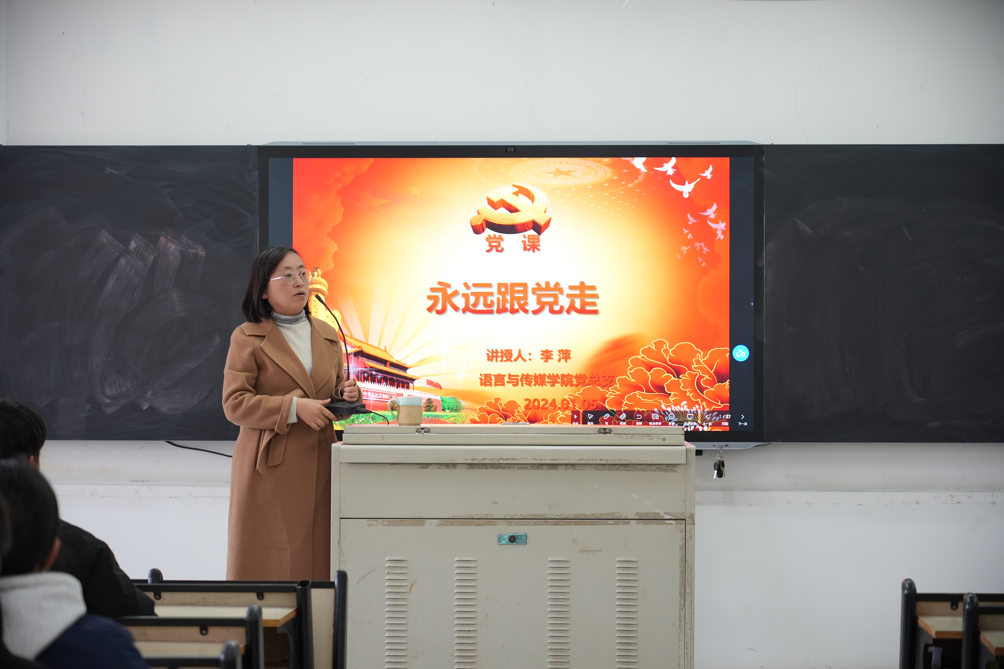 为深入推进学习贯彻习近平新时代中国特色社会主义思想主题教育,教育引导广大师生自觉用党的创新理论成果武装头脑、指导实践、推动工作,提升主题教育感染力、影响力,加强党员教育,让广大师生在听党课中了解国情、提高党性修养,2024年1月5日,91成人网站党总支副书记、院长李萍在2018教室主持了“永远跟党走”主题党课,学院100余名预备党员和入党积极分子接受了此次党课教育。