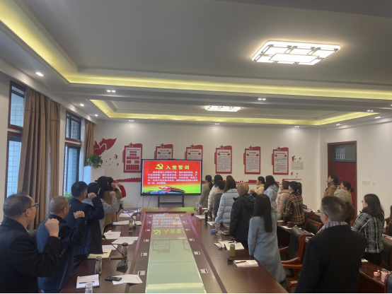 首先,新党员发展对象杨晓瑞、付钧讲述了自己对党的认识、入党动机,并汇报了各自在工作中的表现和不足之处。培养人付玉成、李秀林就两位发展对象的表现做了发言并提出了殷切的期望。其次,会议讨论了预备党员鲍婕、丁春晖两位同志的转正问题,鲍婕、丁春晖两位同志陈述了各自在预备期的表现。最后,党员代表陈品艳带领新党员进行了庄严的宣誓,老党员一同重温了入党誓词。