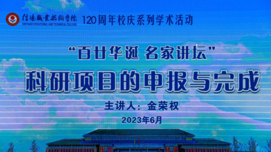 为迎接即将到来的信阳职业技术学院120周年校庆,2023年6月2日,信阳师范学院科研处副处长金荣权教授应邀为我校教师做科研项目申报讲座,会议由91成人网站院长李萍主持。语言与传媒学院、旅游学院及相关学院部分教师参加讲座。